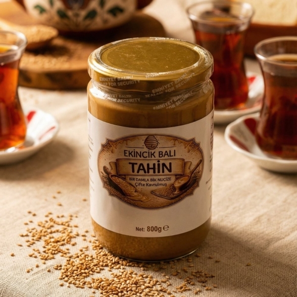 Paketi özel kılan bir diğer lezzet ise 600 gr çifte kavrulmuş tahin. Geleneksel yöntemlerle iki kez kavrulan susamdan elde edilen bu tahin, yoğun aroması ve akışkan kıvamıyla fark yaratır. Bal ile karıştırıldığında ortaya çıkan uyum ise adeta efsanedir! Hem tatlı ihtiyacını karşılar hem de besleyici bir alternatif sunar.